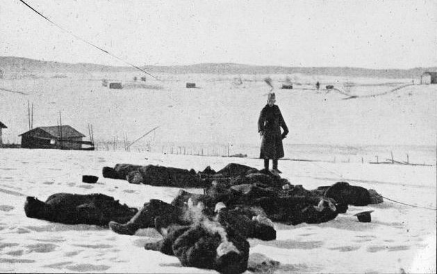 A group of Red soldiers after their execution at Länkipohja in the Finnish Civil War, 17 March 1918.