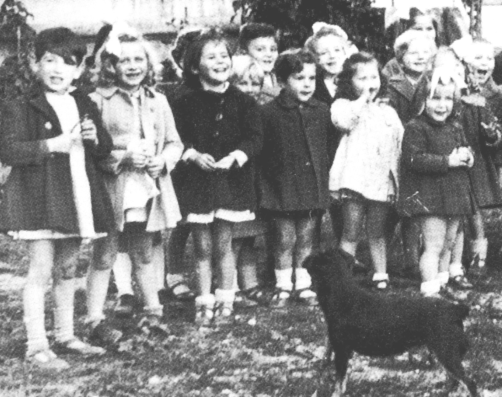 Suzanne (second from left) with fellow orphans and their dog, Zezette, at Raincy-le-Plateau children’s home 1946. See ‘Holocaust to Resistance,’ pp. 13-14.